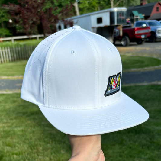 WHITE 6 PANEL - LASER PERFORATED PERFORMANCE // FLAT BRIM SNAPBACK